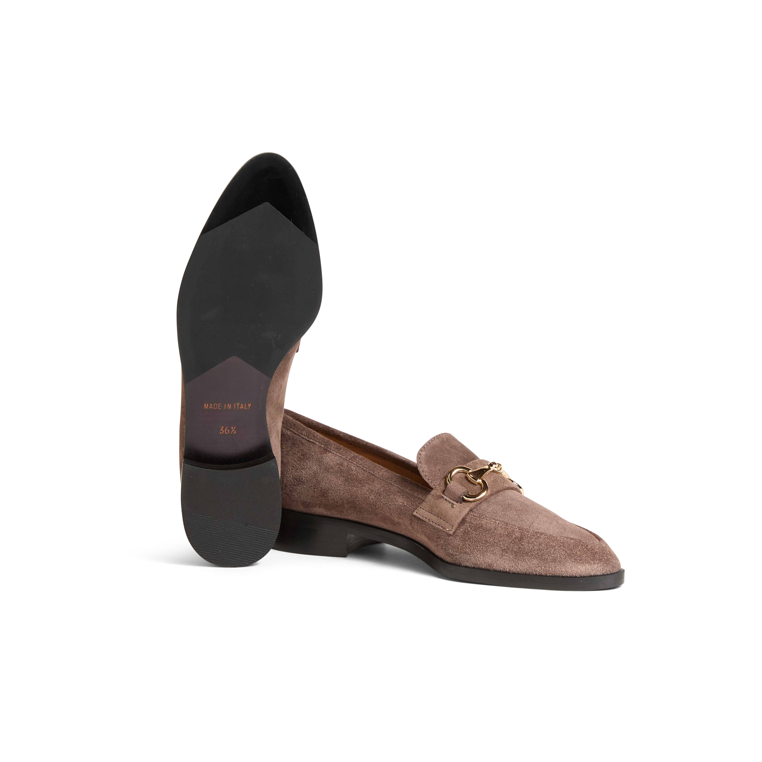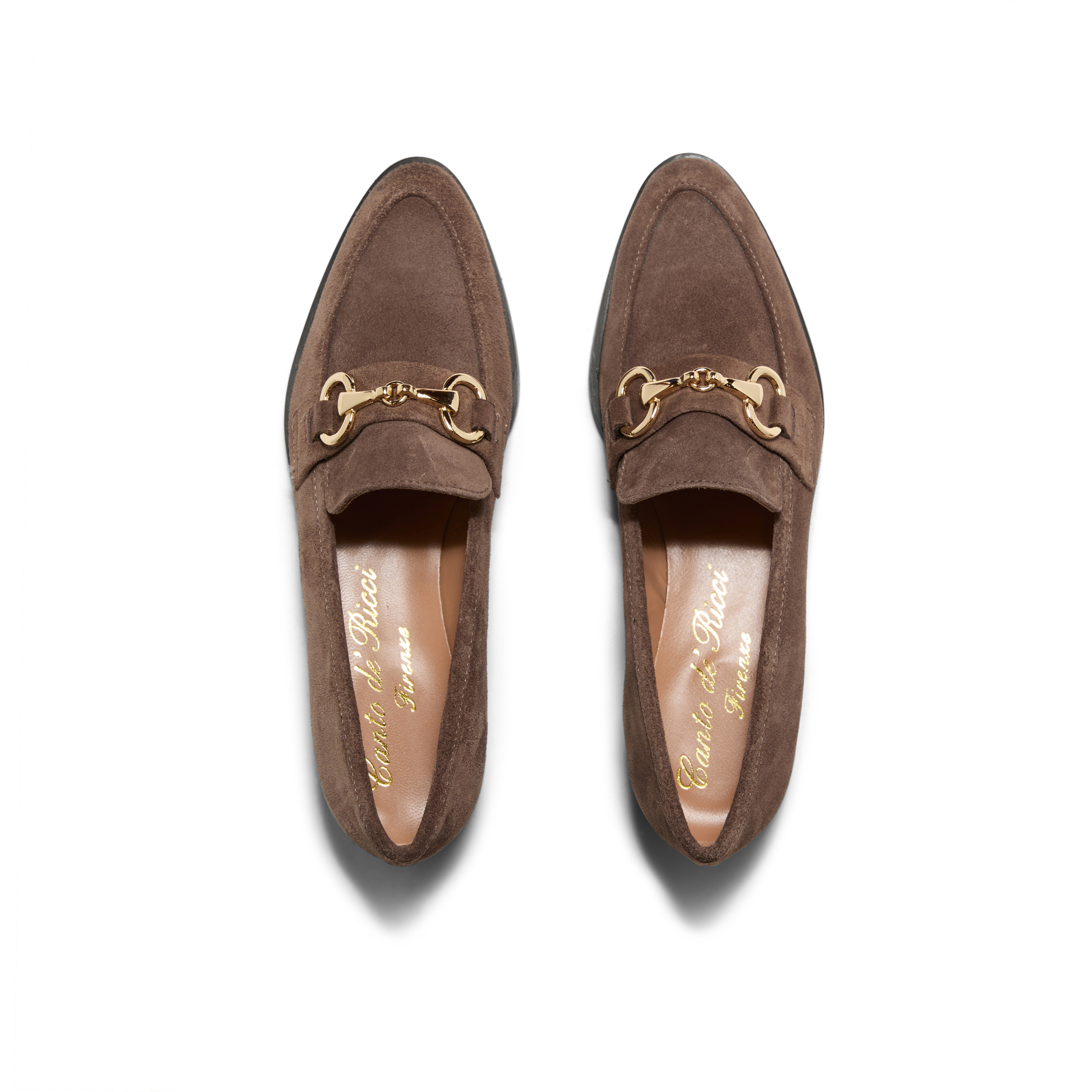 Women’s Loafers in Suede, Leather Lining and Insole, Rubber Sole. The Heel is 2,5 cm high. For both a formal and trendy Look. 100% made in Italy.