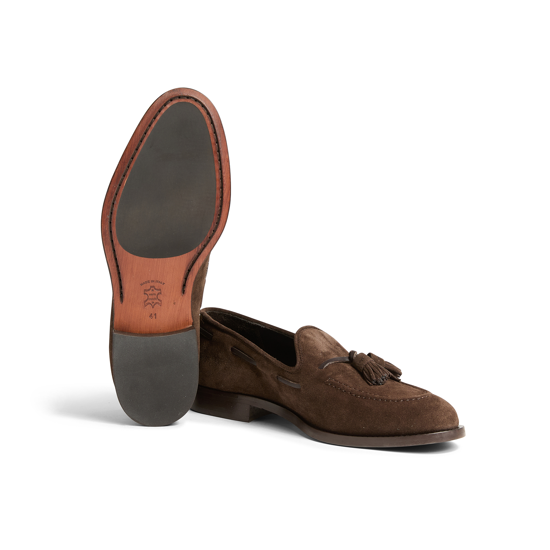 Men’s Loafers in Suede, Leather Lining and Insole, Leather + Rubber Sole. For an elegant and formal Look. 100% Made in Italy.