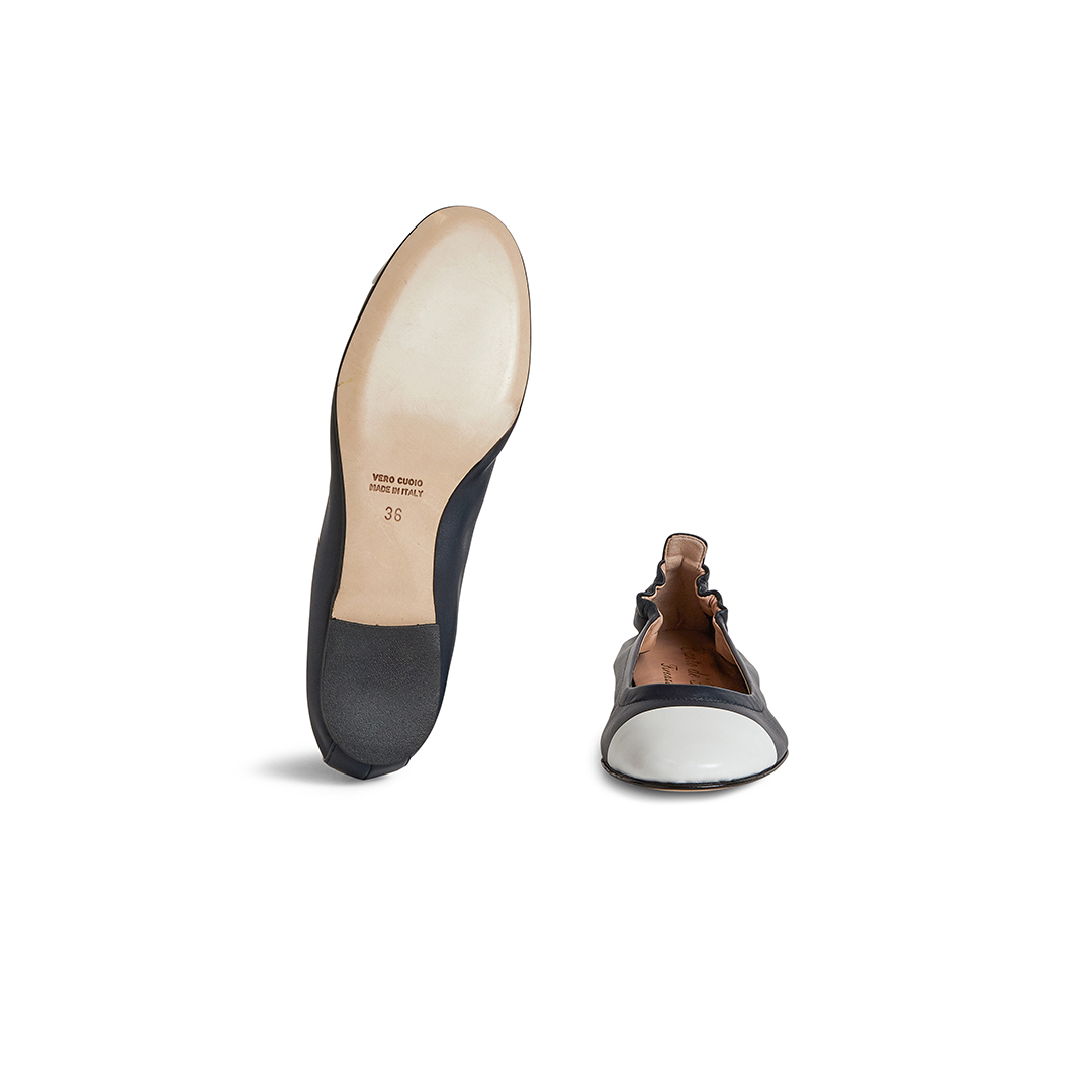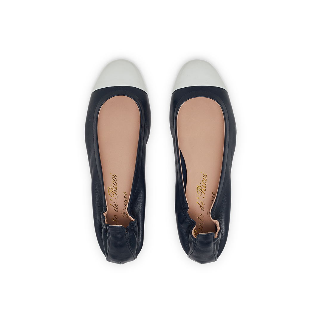 Women’s Flats in Calfskin Leather with Patent Leather Toe, Leather Lining and Insole, Leather Sole. For both a formal and trendy Look. 100% Made in Italy.