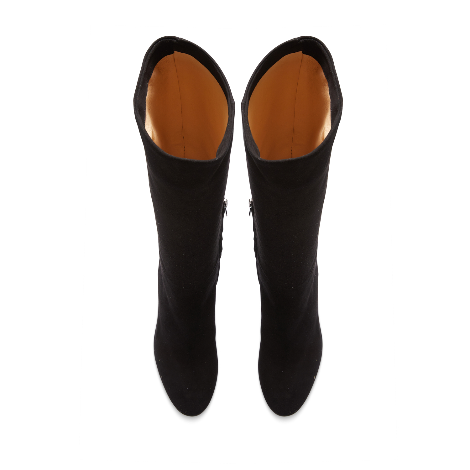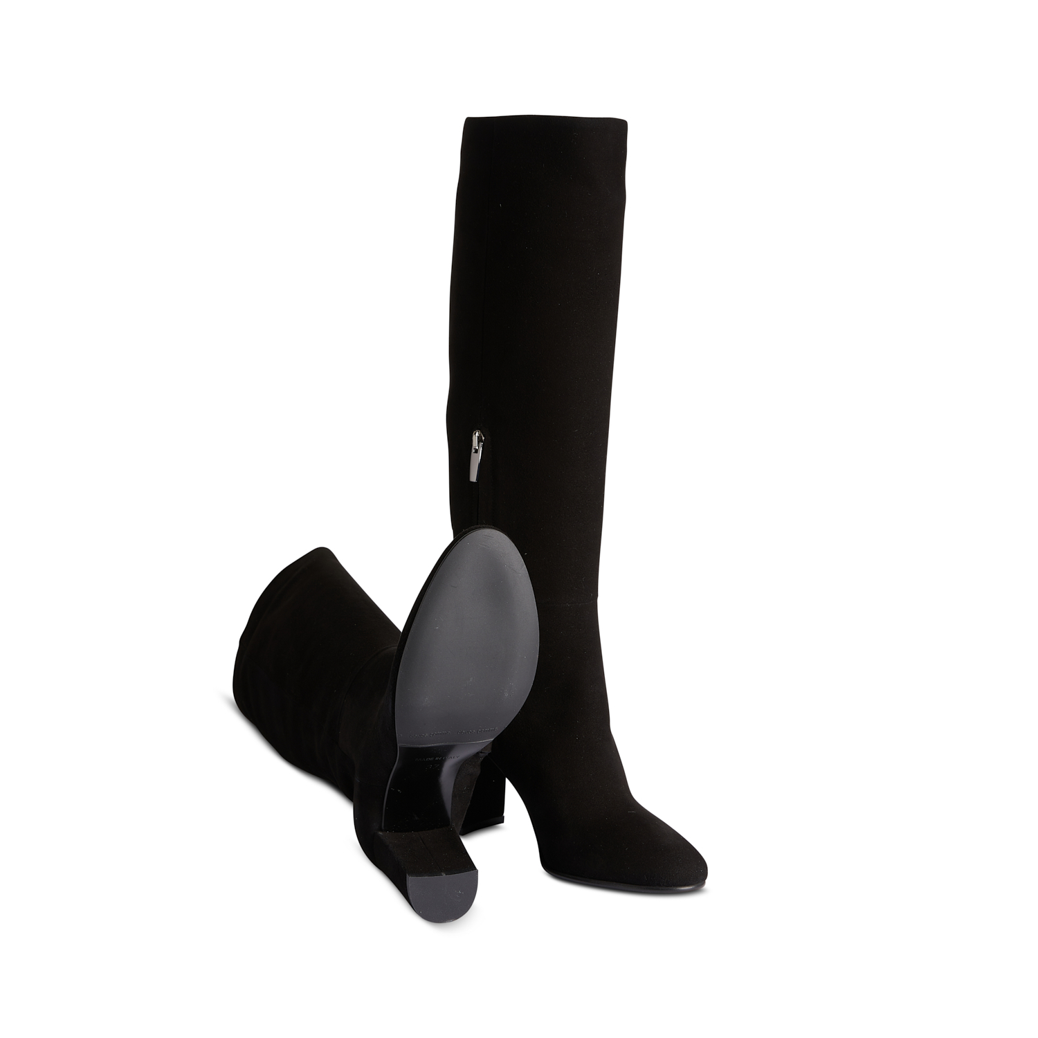 Women’s Boots in Calfskin Leather or Suede, Leather Lining and Insole, Rubber Sole. With Half Side Zip. The Heel is 8 cm high. For both a formal and trendy Look. 100% Made in Italy.