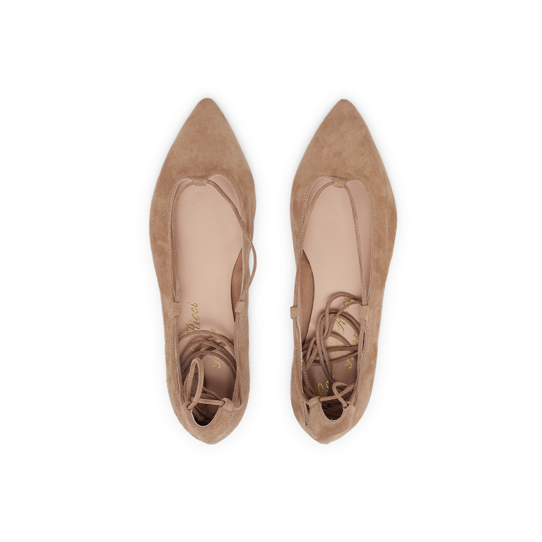 Women’s Ballet Flats in Suede, Unlined, Leather Insole, Leather Sole. For both a formal and trendy Look. 100% Made in Italy.