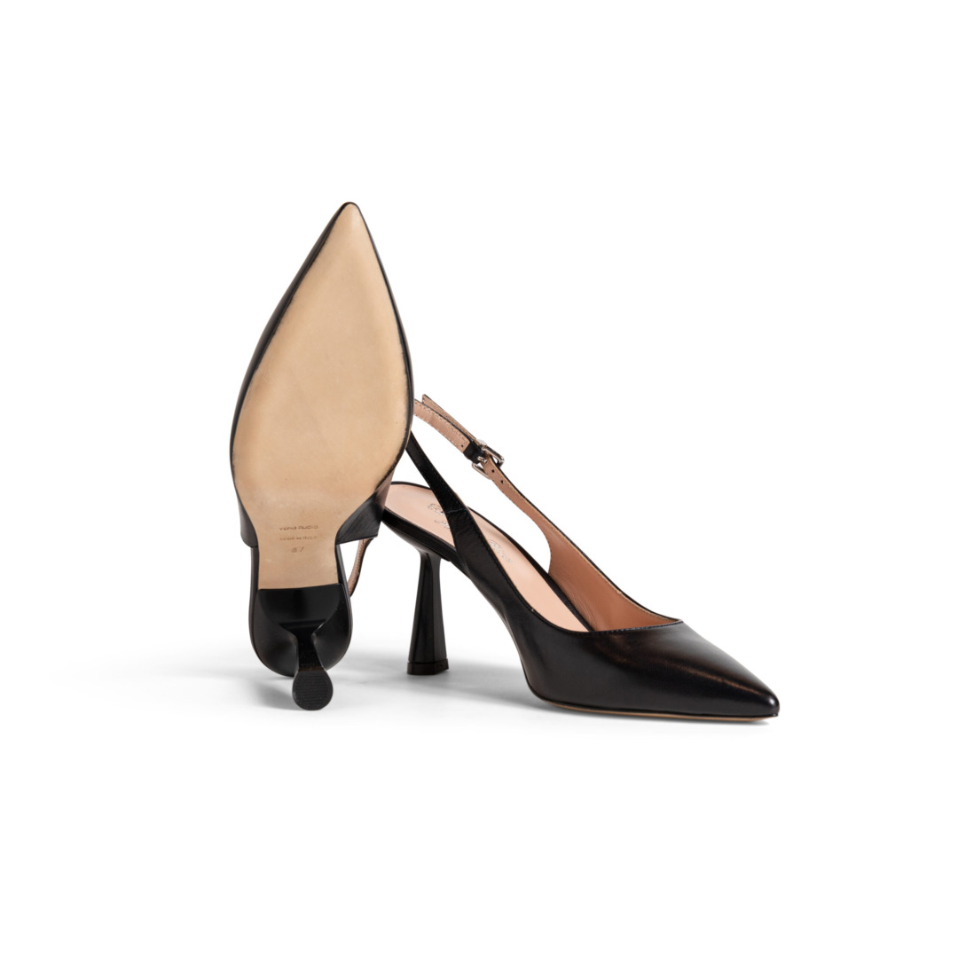 Women’s Heels in Calfskin Leather, Leather Lining and Insole, Leather Sole. The Heel is 8 cm high. For an elegant and formal Look. 100% Made in Italy.