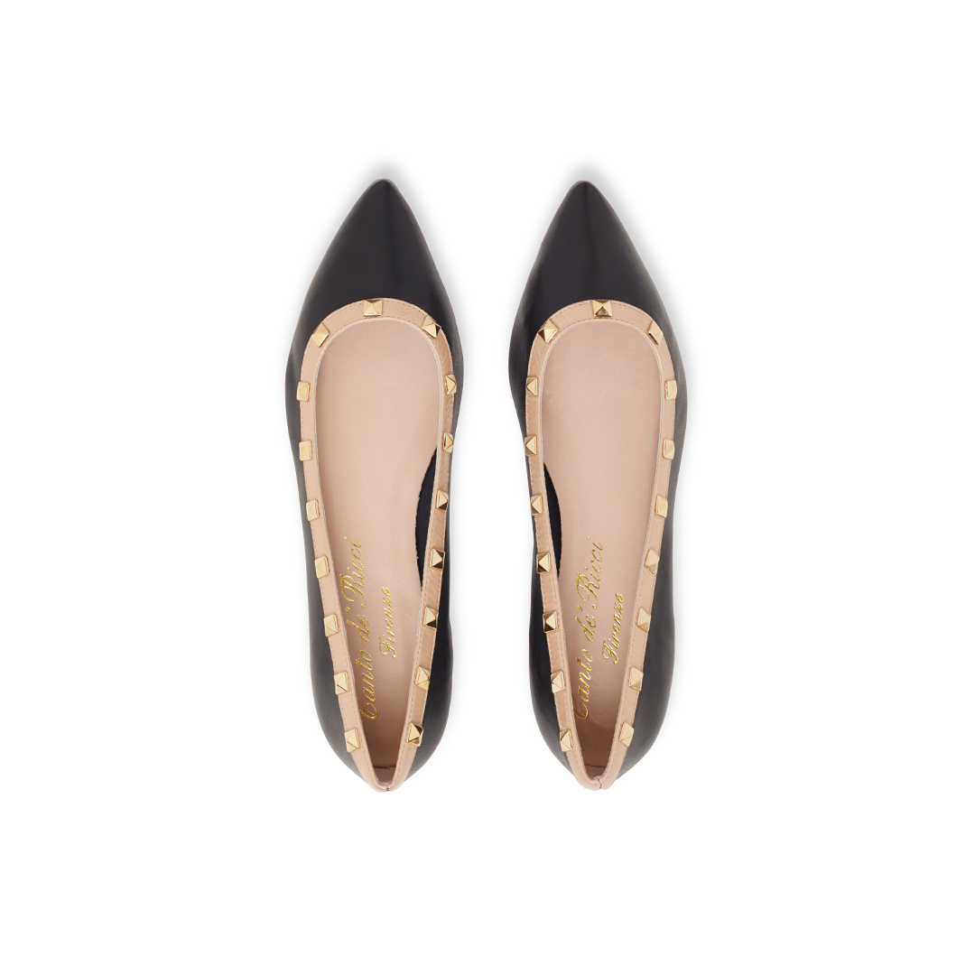 Leather Ballet Flats with Patent Leather Detail and Studs. Unlined, Leather Sole.